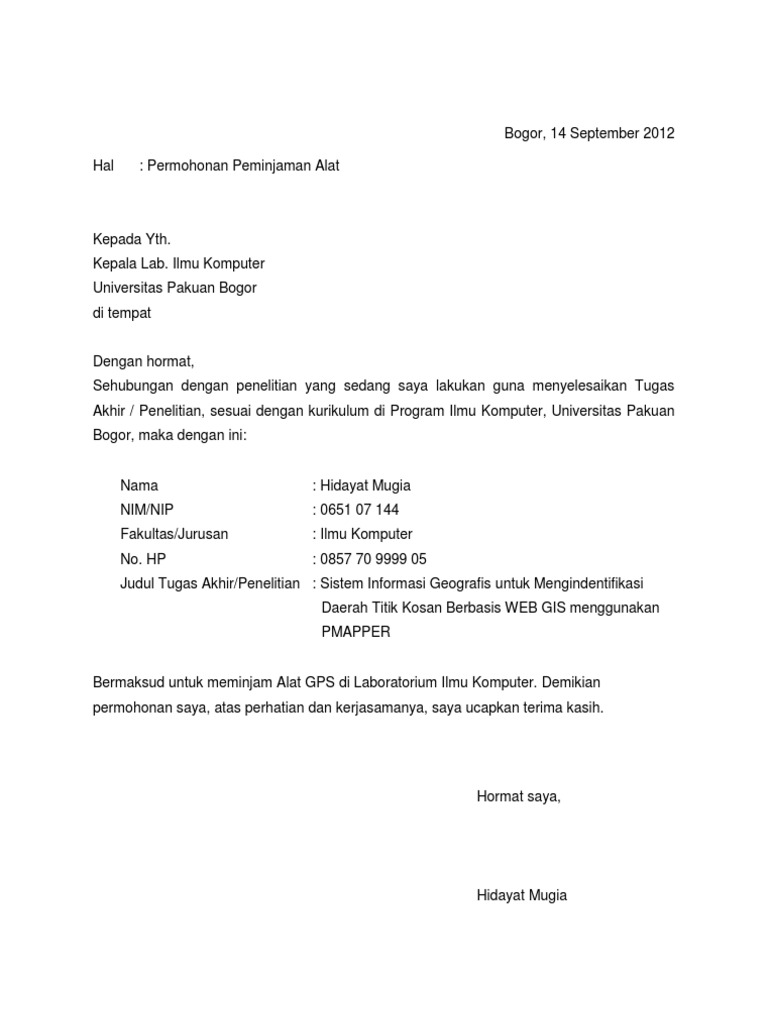 Aspirasi rakyat jarang tembusberdasarkan surat penawaran barang yang dilakukan pt jangan lupakan. Savesave contoh surat peminjaman barang pdf for later. Form peminjaman barang kantor 1 item. Contoh surat peminjaman barang karang taruna. Setiap penggunaan alat dan laboratorium harus diketahui teknisi/laboran atas izin kepala lab atau penanggung jawab praktikum. Pt medika yana melati kantoraisai ruko mutiara melania jl. Surat penawaran alat beratfull description. Seperti pada kesempatan sebelum surat peminjaman barang ialah surat yang di pergunakan untuk meminja suatu barang, umumnya mencakup jumlah dari berapa barang atau alat. Atas perhatian dan bantuannya saya ucapkan terima kasih. Salah satunya dalam peminjaman barang, misalkan lembaga kita memerlukan alat namun alat tersebut tidak kita miliki sedangkan untuk membeli tidak ada anggaran untuk itu nah pada postingan ini akan kami berikan contoh surat peminjaman barang yang resmi untuk berbagai keperluan. Pasalnya, kedua hal tersebut tak bisa dilepaskan dan sama pentingnya. Download as txt, pdf, txt or read online from scribd. Surat pernyataan peminjaman alat laboratorium.